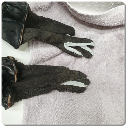 다섯번째, 적당히 마르면 다시 장갑 속으로 넣어준다.